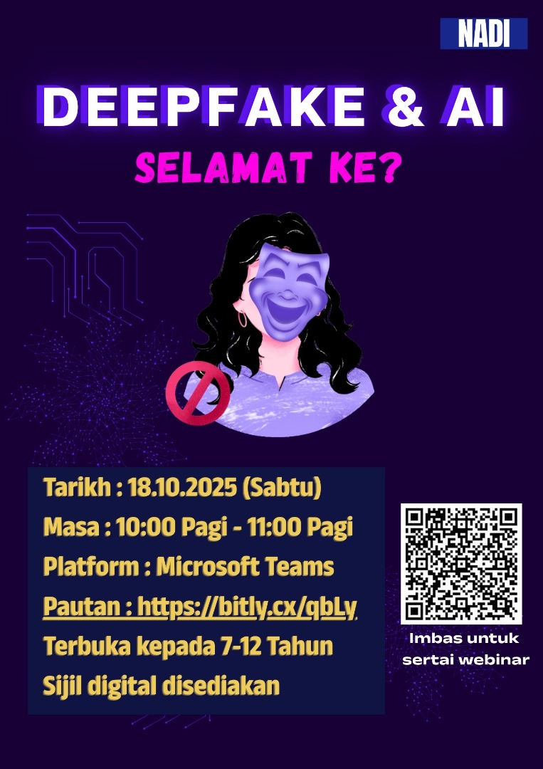 π£ PERTANDINGAN MENCIPTA E-POSTER NADI! π¨π» Jom sertai Pertandingan Mencipta E-Poster NADI yang akan berlangsung dari 1 hingga 30 November 2025! π Tema Poster: π¦π§ 7β12 Tahun: Buli Siber π§π© 13 Tahun ke atas: Penipuan Cinta π Syarat Penyertaan: β […]